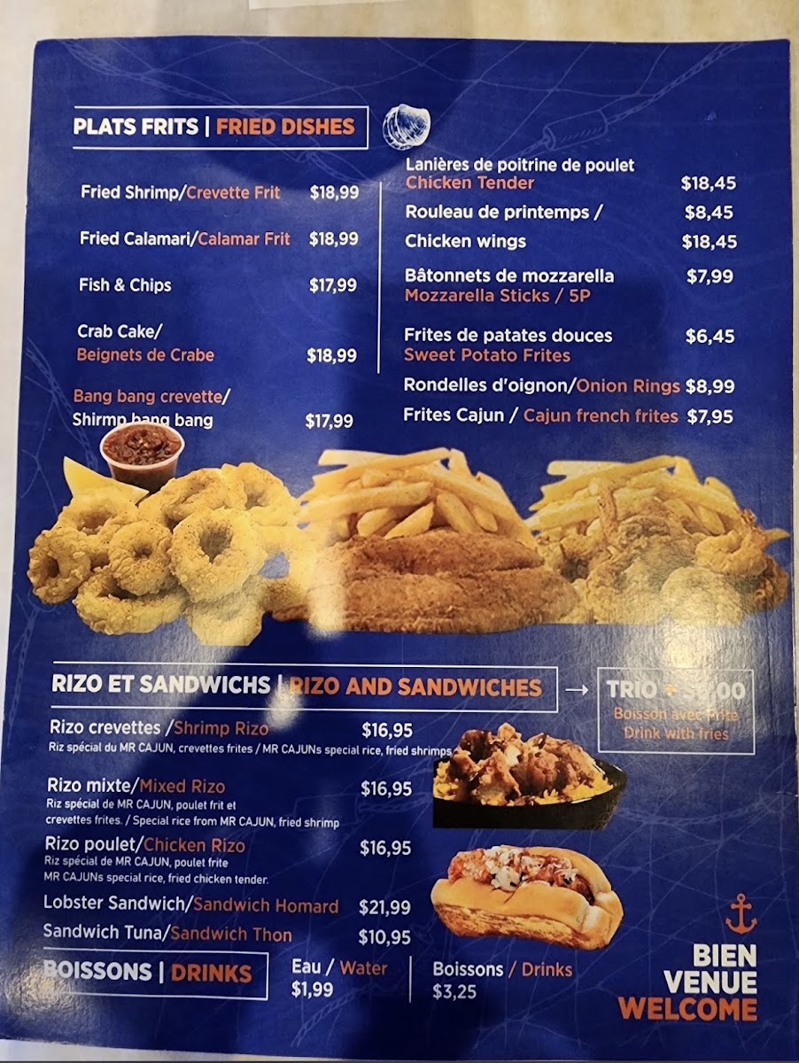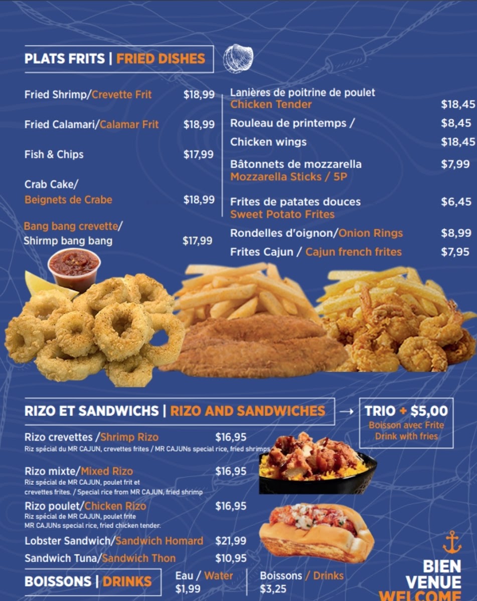 At MR CAJUN, you’re treated to a culinary delight featuring mouthwatering dishes crafted from the freshest seafood. Start your meal with their enticing Fried Shrimp (Crevette Frit for $18.99) or indulge in the crispy indulgence of the Fried Calamari (Calamar Frit for $18.99). Both options deliver a savory crunch that’s simply irresistible! For those craving something more substantial, the Rizo and Sandwiches, priced at $16.95, are perfect for a satisfying meal.